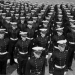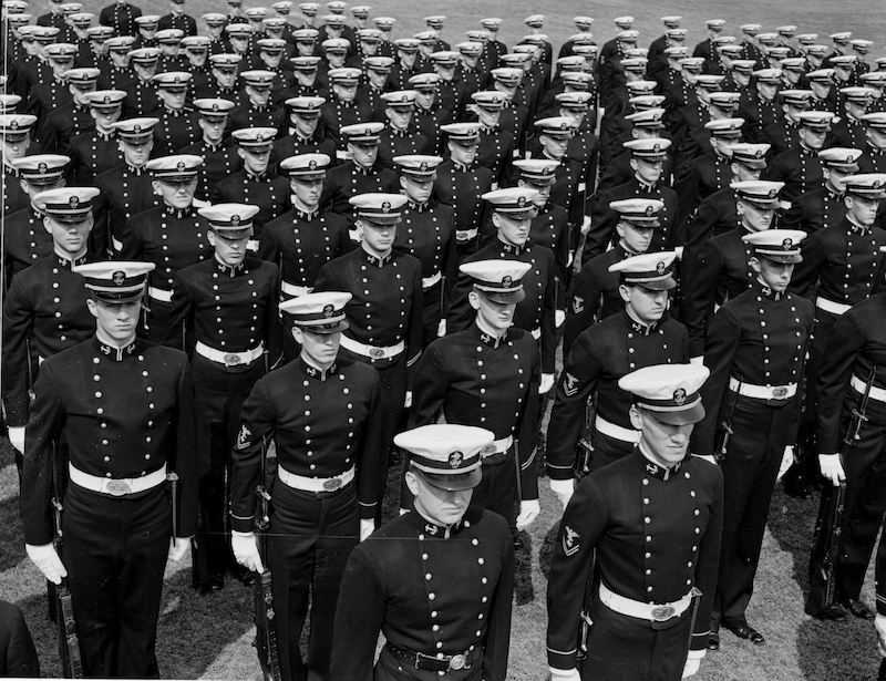 - “I was always looking for a fresh perspective, especially for a clichéd subject like parades at the Naval Academy.” United States Naval Academy, Annapolis, 1952.