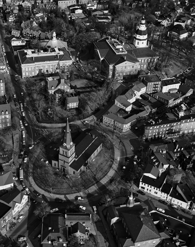 - December 1959: “Among the hundreds of aerials I’ve taken of Annapolis, this is the best for illustrating its radiating circles, and I’ve never been able to duplicate it.” Annapolis, 1959.